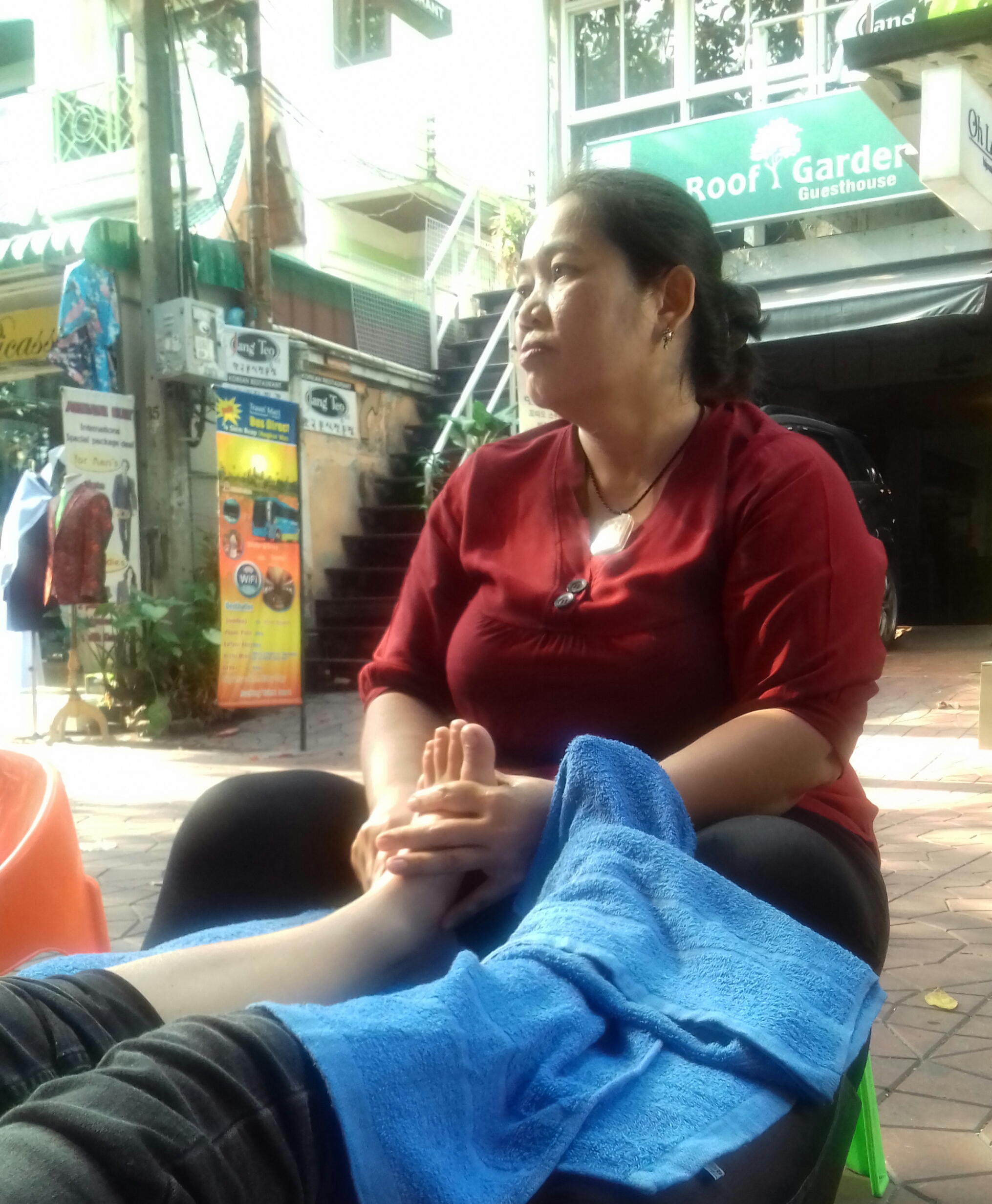 Et puis comme par miracle on se retrouve devant un resto sympathique où des masseurs siègent juste à côté…Du coup, nous testons avec une joie non dissimulée le massage de pieds pendant 30 minutes.