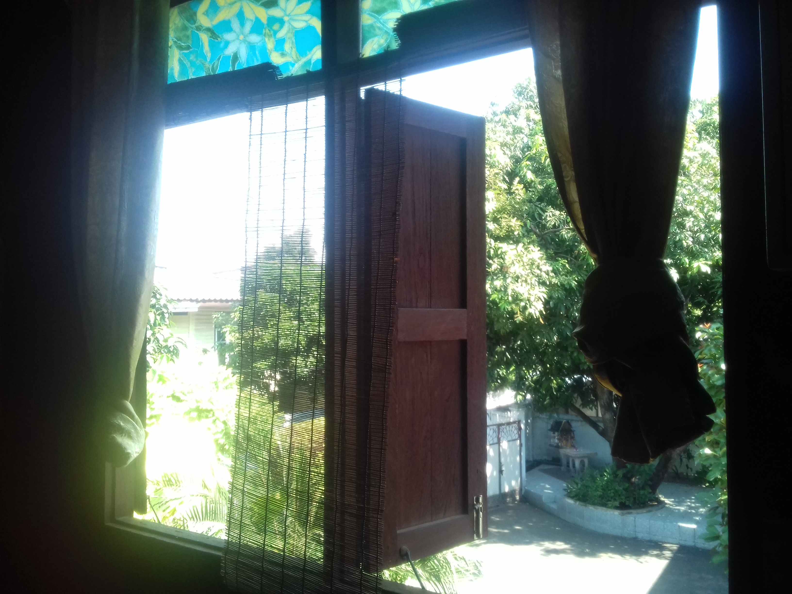 Au coeur de Bangkok, une ville de 8 millions d’habitants, nous sommes au calme, au fond d’une ruelle entourée de jardins d’Eden. Quand on descend de notre chambre, il y a une cour remplie de pots contenant des plantes que nous n’avons jamais vues excepté les papyrus.