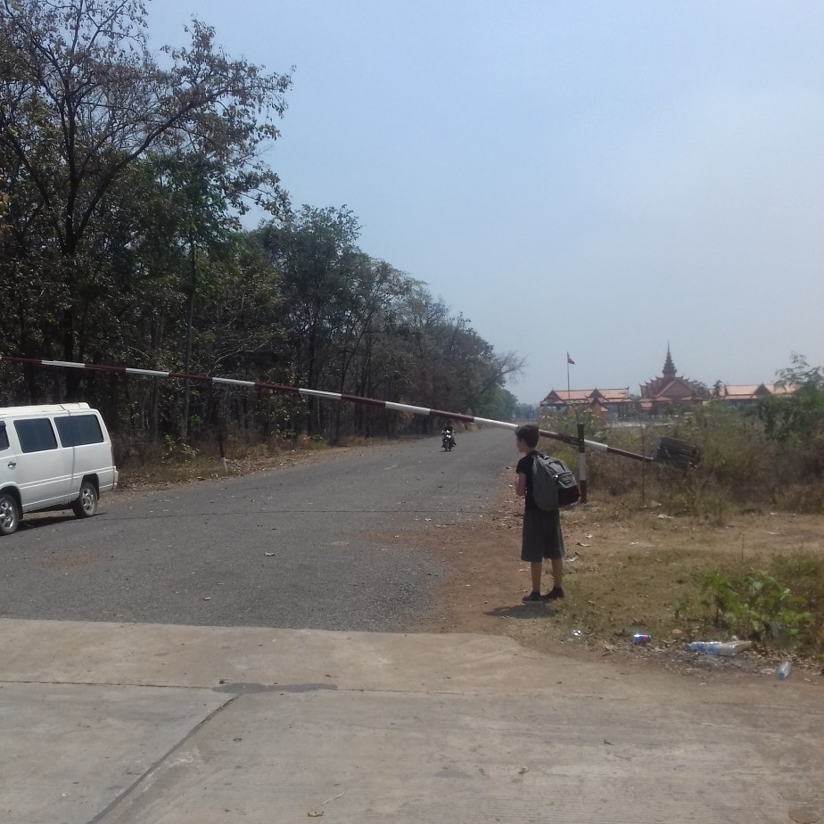 Ça ressemble à un film. Enfin il nous lâche. J’adore sortir ainsi avec juste un sac, Merlin pareil. On marche 500 mètres à peine et les ennuis prévus commencent : le racket de 2 dollars par personne pour obtenir le tampon de sortie du Laos sur son passeport. Je prends mon téléphone et fais semblant d’appeler l’Ambassade de France. J’explique ce qui nous arrive en évoquant bien fort la corruption. Puis on s’asseoit en face de leurs bureaux et on attend. 10 minutes plus tard, l’un d’eux me propose 1 dollar pour nous deux…J’ai pas envie d’insister davantage car ils respirent la méchanceté et j’ai envie de filer au Cambodge (normalement c’est gratuit…)