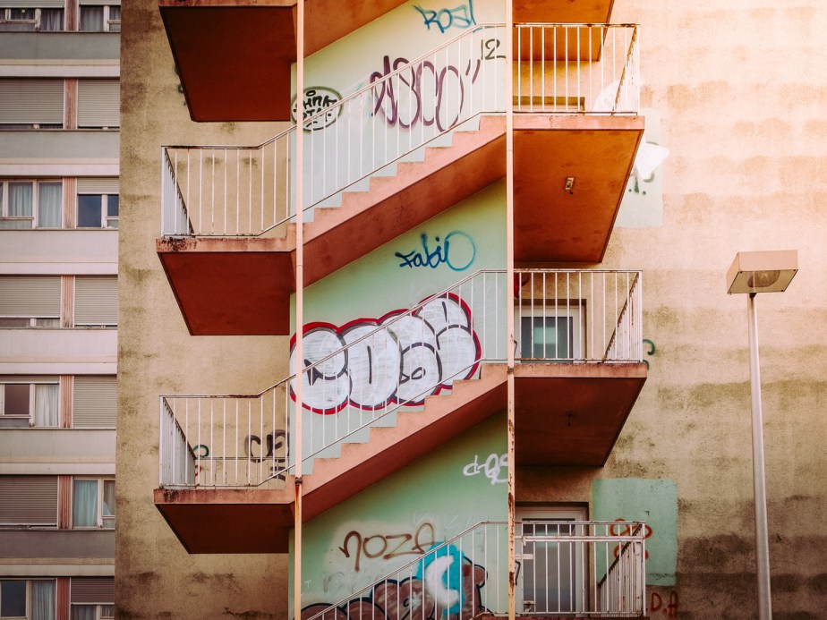 Ces photos peuvent aussi suggérer le poids toujours plus lourd que pèsent les constructions humaines sur la Terre avec toutes ses absurdités et toutes ses conséquences sociétales et écologiques. Kadoc nous propose des images mathématiques d’où peuvent surgir des sentiments contradictoires : celui d’être piégé par la rigueur des conceptions humaines tout en se sentant soulagé grâce à l’art de rue qui nous fait des clins d’oeil. Nous sommes amusés par les formes répétitives façon zentangle et en même temps oppressés par leur présence. Nous sommes agréablement surpris par un paysage tout en ne voulant pas nous y trouver. Nous éprouvons de la compassion pour un quartier sinistre en maudissant ses concepteurs. Nous déambulons sur tant de géométries qu’elles en deviennent kaléidoscopiques. De sordides elles deviennent splendides. Mais soudain, la perfection et la pureté de la nature nous apparaissent en face de tout ces constructions technosphériques. La grandiose nature qui intègre et reflète les données mathématiques les plus parfaites rit bien fort de nous observer construire une vague représentation de ce qui devrait être sublime et idéal. Au fond, Kadoc nous rappelle peut-être que l’humain a construit sa propre prison en même temps qu’il déversait des tonnes de béton.