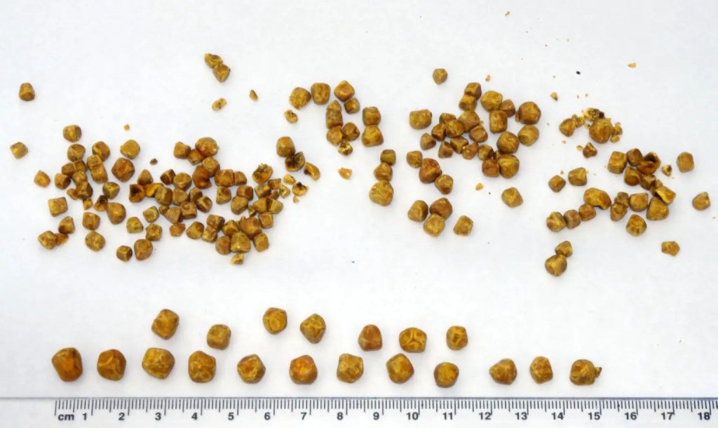 À noter : des calculs poreux, friables, ne sont pas des calculs provenant de la vésicule biliaire, il s’agit de déchets compactés, amalgamés sous forme de calculs. Les calculs de la vésicule biliaire sont durcis. Ce n’est qu’en les prenant en main que vous pourrez saisir la différence.