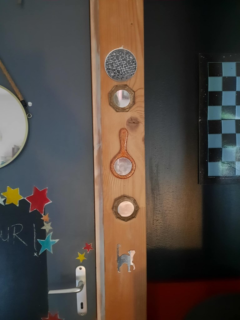 Il y a aussi les miroirs, que j’ai disposés ici et là dans la maison, non pas pour me regarder, mais comme des portails, des passages, comme s’ils devaient refléter autre chose que mon image. J’ai aussi suspendu, presque en secret, des vieilles clés, à peine visibles, comme des signes muets pour moi seule, des clés d’ouverture, des outils de fuite de ce monde verrouillé.