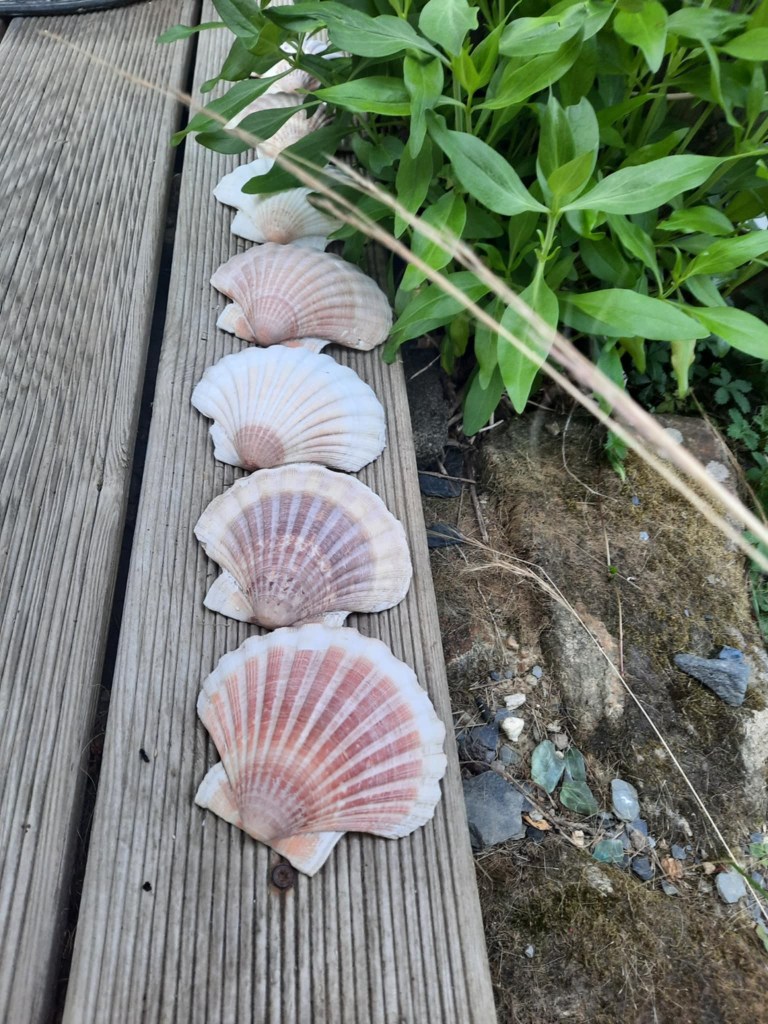 Mais l’un des signes les plus forts, les plus anciens, est celui que j’ai disposé dans le jardin : des coquilles Saint-Jacques. Il y en a à l’entrée et à d’autres endroits-clés du terrain. Sans le savoir, j’avais activé un symbole fondamental. La coquille Saint-Jacques est à la fois le signe du pèlerin : de celui qui chemine, se transforme, cherche la lumière et un symbole alchimique profond.