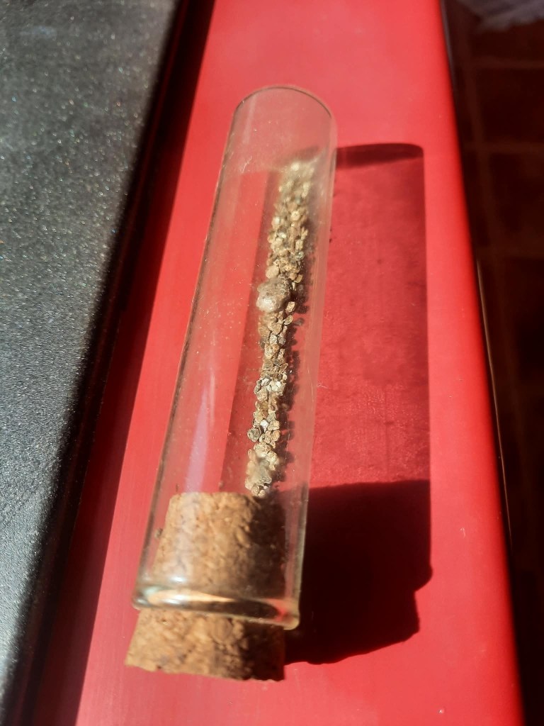 Il en trouve souvent et j’ai de vraies paillettes dans un tube à essai, toujours sur mes étagères aujourd’hui.
