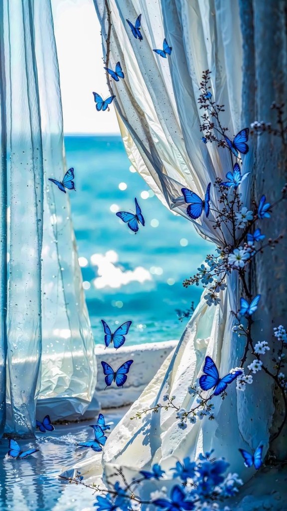 Dans les papillons bleus d’un papier peint de banlieue.
